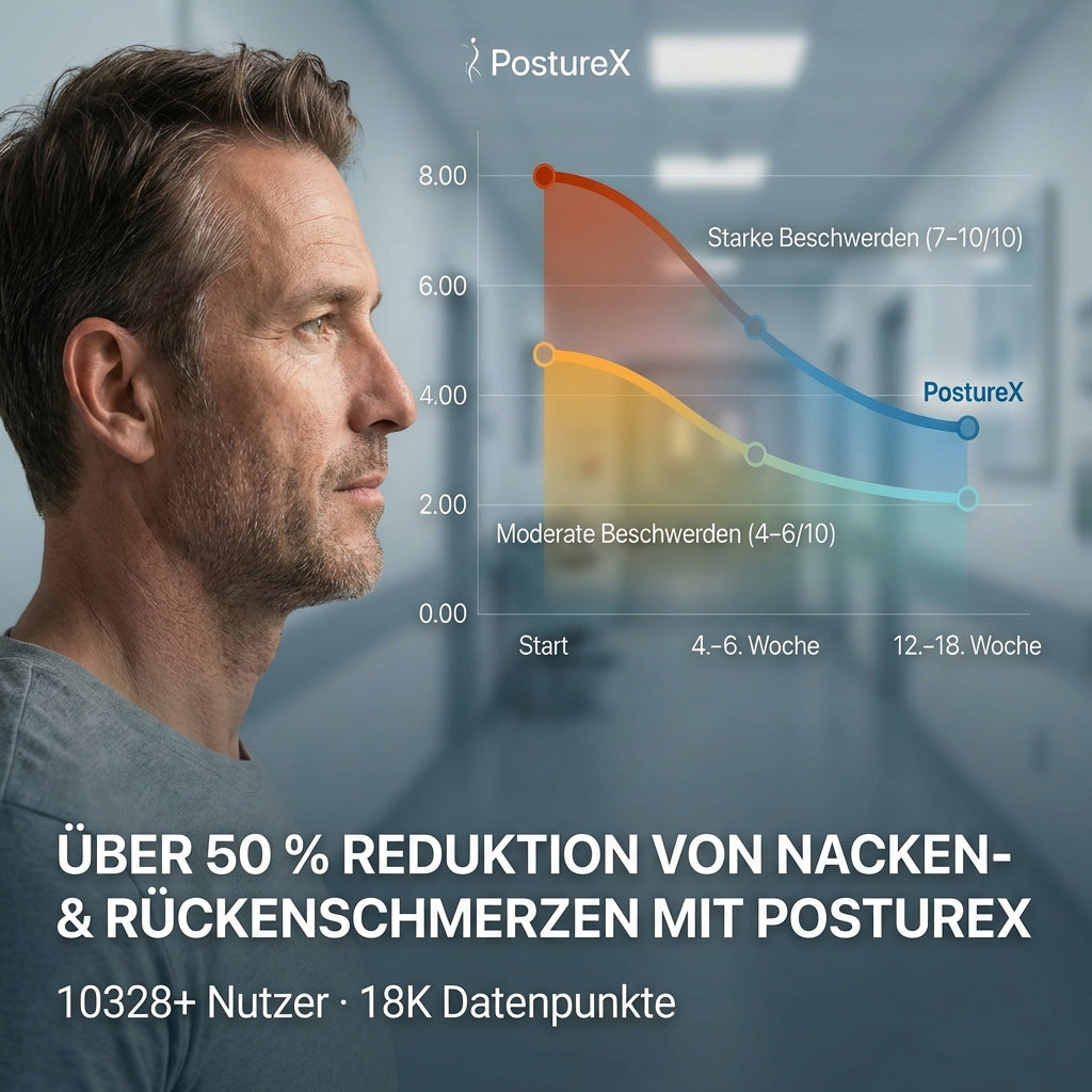 Günstige Alternativen ziehen deine Schultern passiv zurück – PostureX trainiert deine Haltung aktiv und nachhaltig.